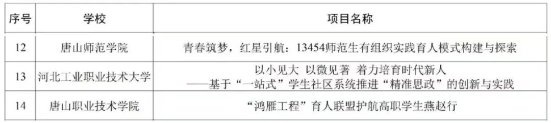 近日,教育部公布2025年度高校思想政治工作质量提升综合改革与精品建设项目名单,我校入选3项。其中《青春筑梦 红星引航:“13454”师范生有组织实践育人模式构建与探索》入选思想政治工作精品项目、《数字技术赋能大钊文物对大学生道路自信提升的创新应用》入选高校数字文物开发、《讲好大钊故事:“一体多维”模式下高校引领大中小学思政课一体化建设探索与实践》入选大中小学思想政治教育一体化建设工作典型案例,3个类别均为首次入选。